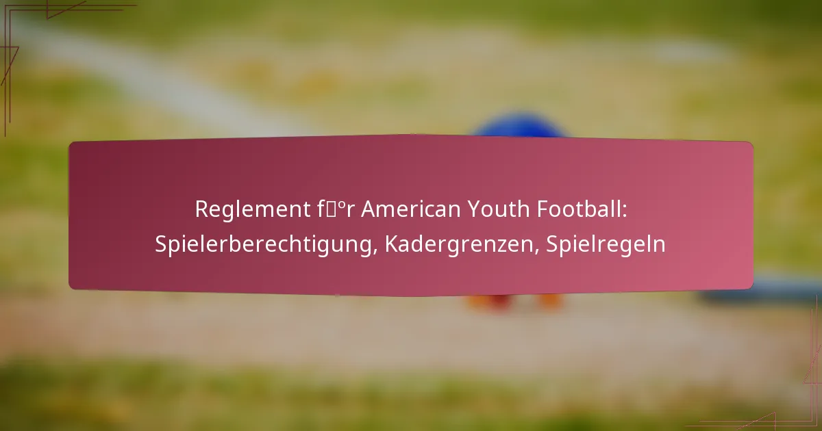 Die Vorschriften für den amerikanischen Jugendfußball umfassen wichtige Aspekte wie die Spielerberechtigung, Kadergrenzen und Spielregeln. Diese Richtlinien stellen sicher, dass die Spieler die Alters- und Gewichtsvoraussetzungen erfüllen, die Wohnsitzregeln einhalten und die notwendigen medizinischen Freigaben besitzen. Darüber hinaus hilft das Verständnis der Kadergrenzen den Teams, die Einhaltung der Vorschriften zu gewährleisten und die Leistung zu optimieren. Vertrautheit mit diesen Vorschriften ist für Trainer, Spieler und Eltern unerlässlich, um ein faires und angenehmes Fußballerlebnis zu fördern.